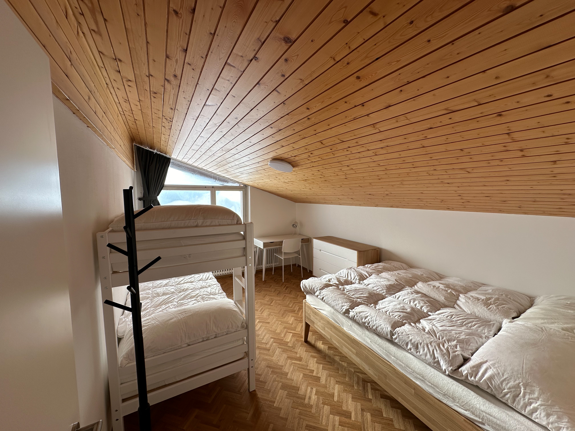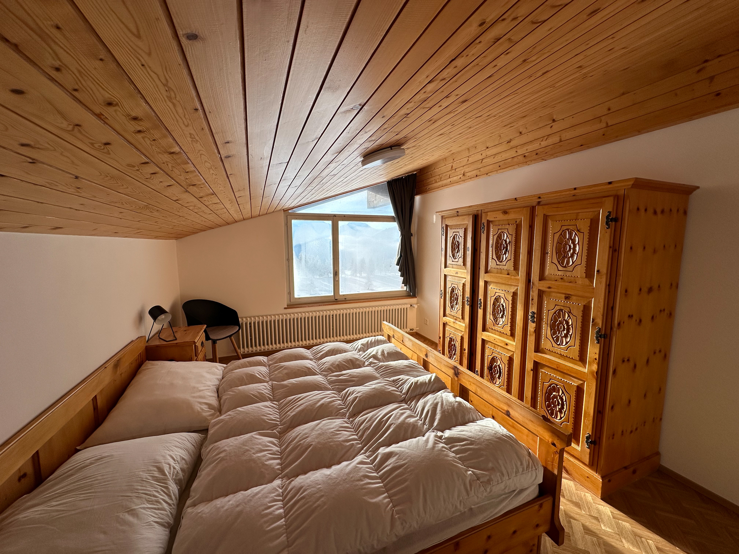 Die Wohnung ist eine moderne Duplex-Wohnung im fünften Stock des Hauses Valaisia, die mit dem Aufzug erreichbar ist. Sie bietet bequem Platz für bis zu sechs Personen.