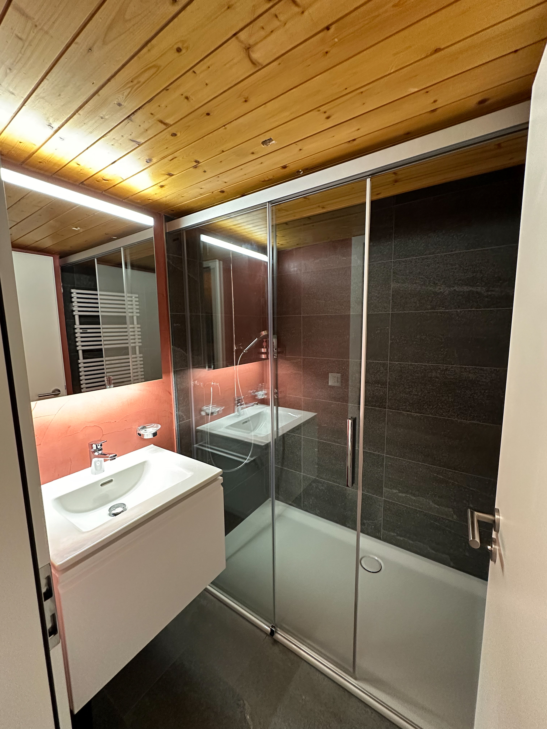 Im Erdgeschoss des Hauses befindet sich auch ein zentraler Abstellraum für Skis, Snowboards und Skischuhe mit direktem Ski-in und Ski-out Zugang.